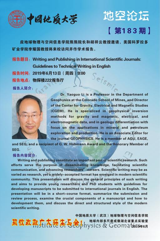 [6月13日]地空论坛:美国科罗拉多矿业学院李耀国教授学术报告