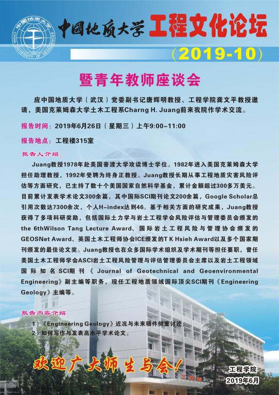 [6月26日]工程文化论坛:美国克莱姆森大学土木工程系Charng H.Juang学术报告