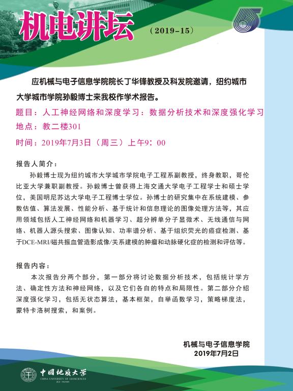 [7月3日]机电讲坛:纽约城市大学城市学院孙毅博士学术报告