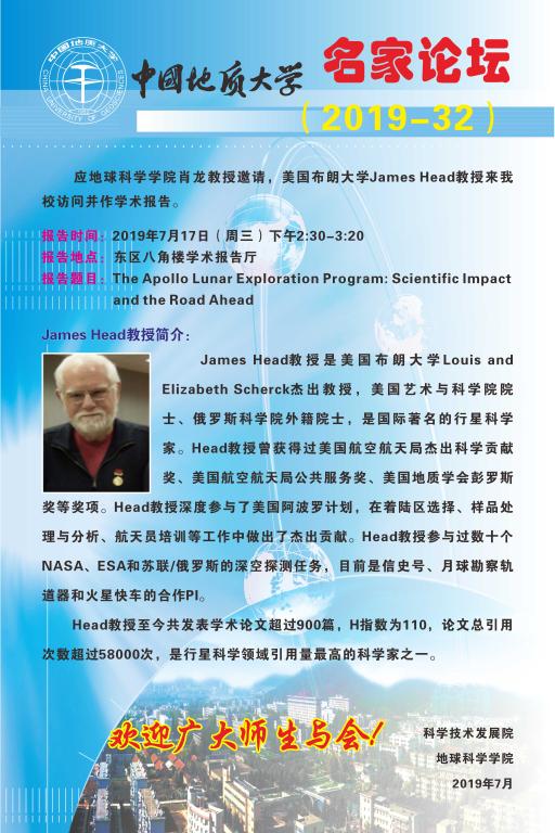 [7月17日]名家论坛:美国布朗大学James Head教授学术报告