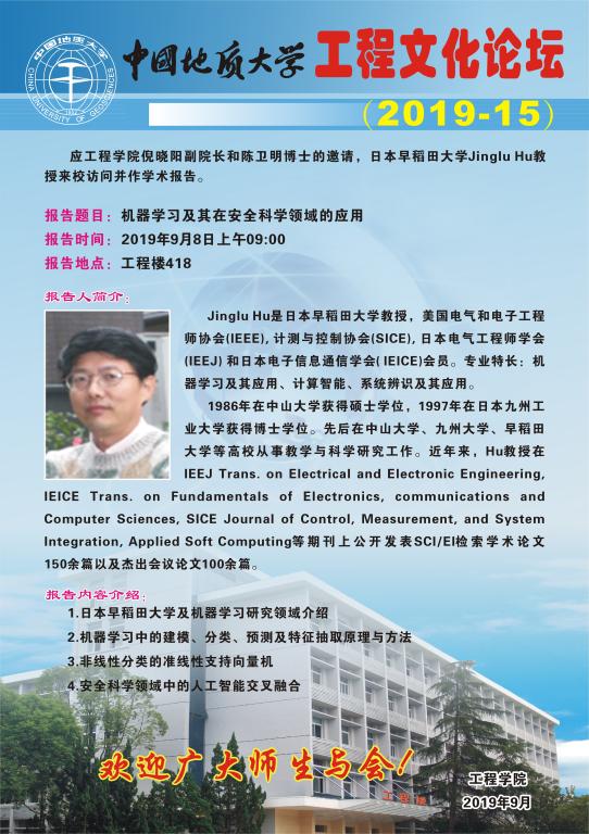 [9月8日]工程文化论坛:日本早稻田大学Jinglu Hu教授学术报告
