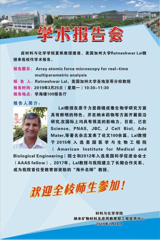 [3月25日]材化学术论坛:美国加州大学Ratneshwar Lal教授学术报告