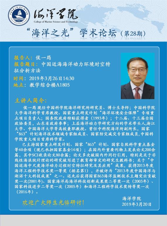 [3月26日]海洋之光学术论坛:中国科学院海洋研究所研究员侯一筠学术报告