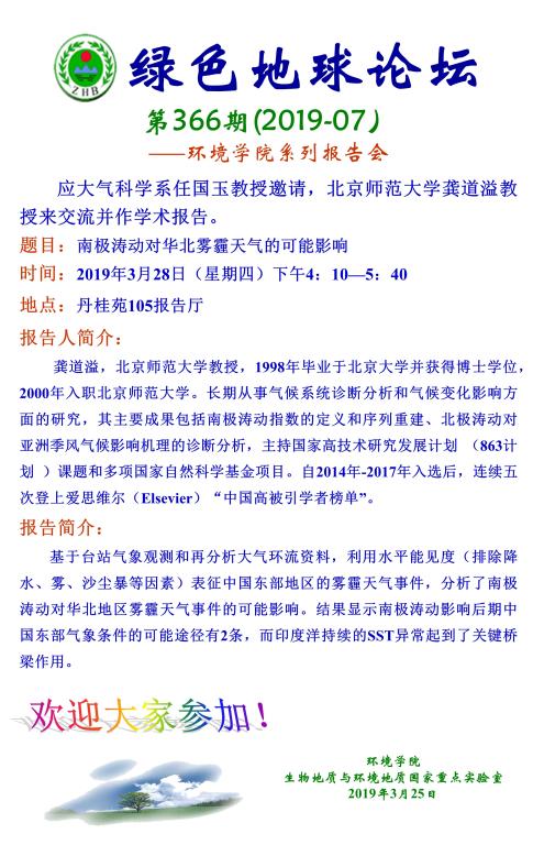 [3月28日]绿色地球论坛:北京师范大学龚道溢教授学术报告