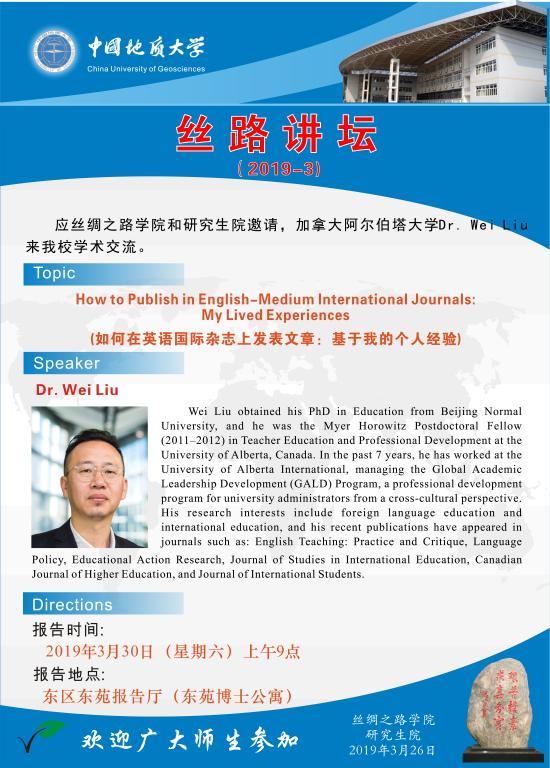 [3月30日]丝路讲坛:加拿大阿尔伯塔大学Dr.Wei Liu学术报告