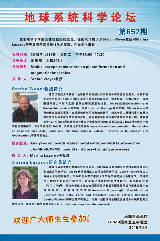 [4月16日]地球系统科学论坛:德国汉诺威大学Stefan Weyer教授和Marina Lazarov研究员学术报告