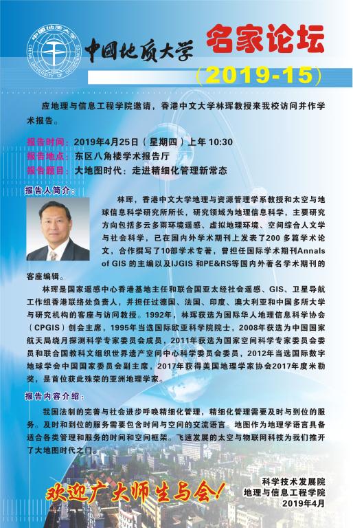 [4月25日]名家论坛:香港中文大学林珲教授学术报告(大地图时代:走进精细化管理新常态)