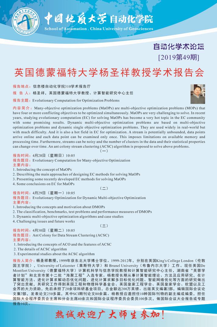 [4月28-30日]自动化论坛:英国德蒙福特大学杨圣祥教授学术报告