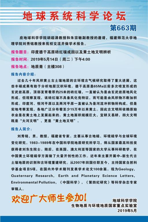 [5月13日]地球系统科学论坛:福建师范大学地理学院刘秀铭教授学术报告