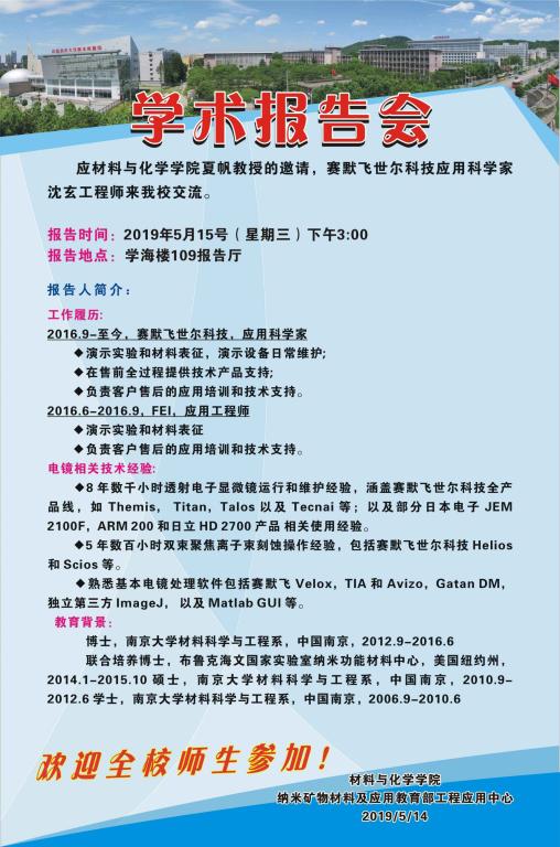 [5月15日]材化学术论坛:赛默飞世尔科技应用科学家沈玄工程师学术报告
