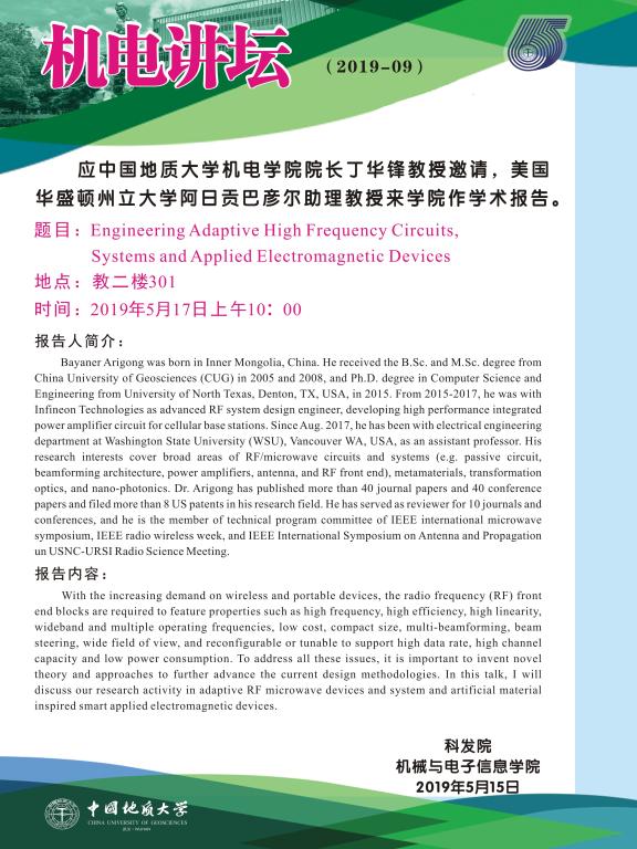 [5月17日]机电讲坛:美国华盛顿州立大学阿日贡巴彦尔助理教授学术报告