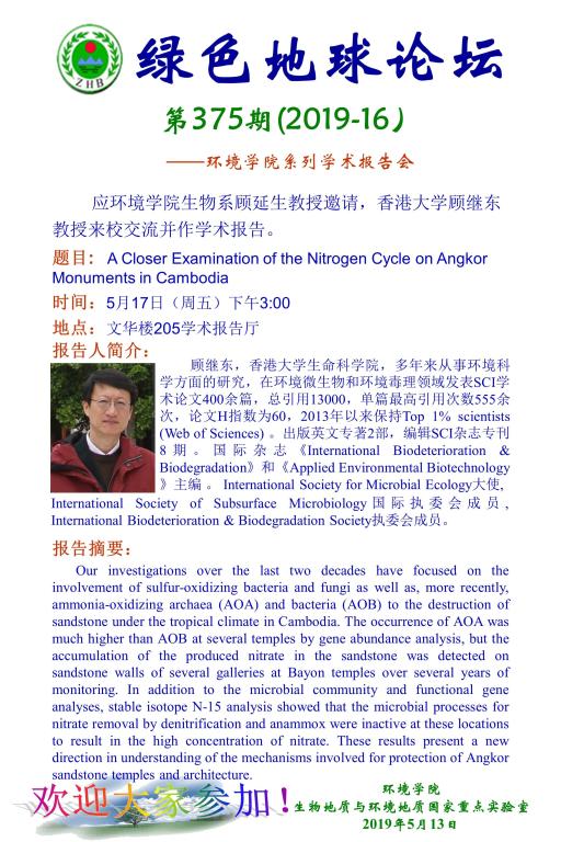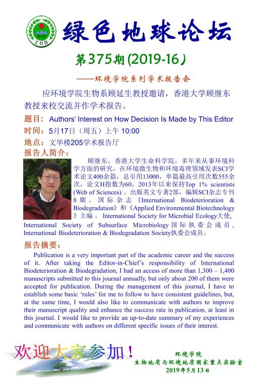 [5月17日]绿色地球论坛:香港大学顾继东教授学术报告