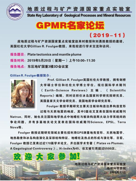 [5月20日]GPMR名家论坛:英国杜伦大学Gillian R.Foulger教授学术报告