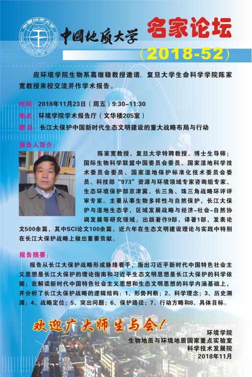 [11月23日]名家论坛:复旦大学生命科学学院陈家宽教授学术报告