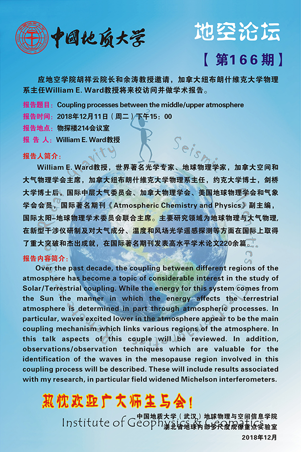 [12月11日]地空论坛:加拿大纽布朗什维克大学物理系主任William E.Ward教授学术报告