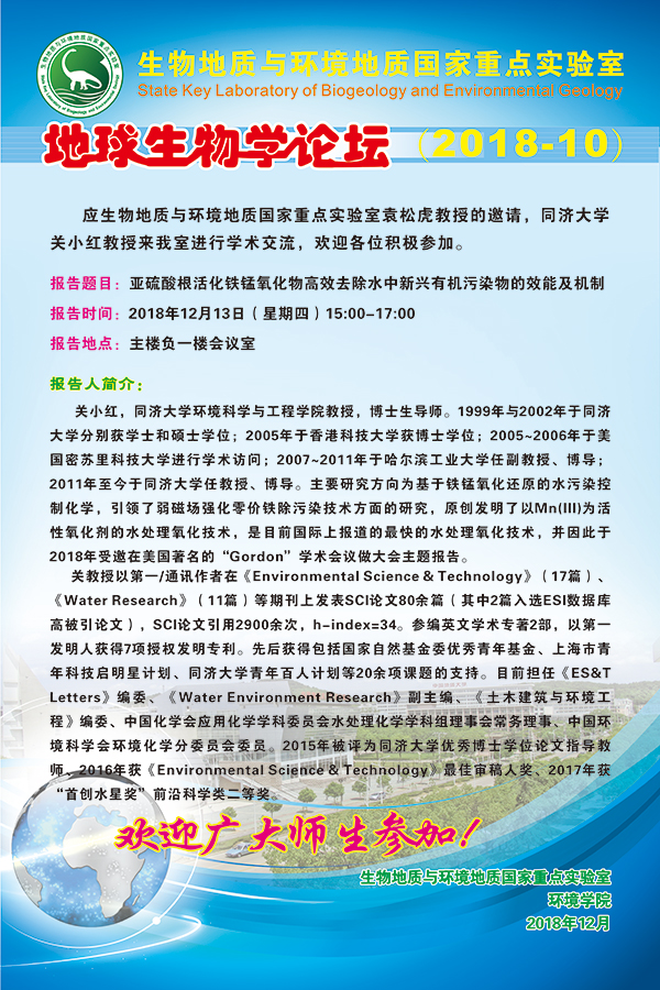 [12月13日]地球生物学论坛:同济大学关小红教授学术报告
