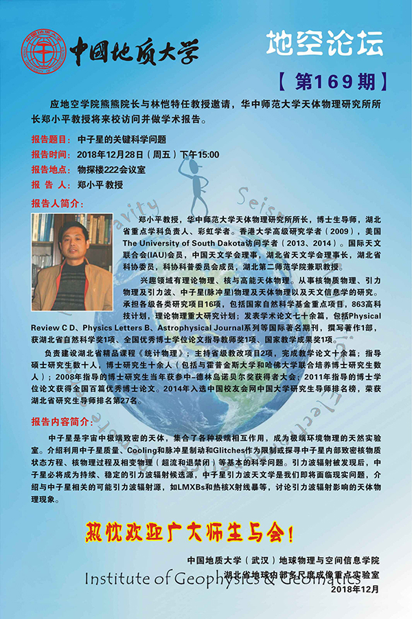 [12月28日]地空论坛:华中师范大学天体物理研究所所长郑小平教授学术报告