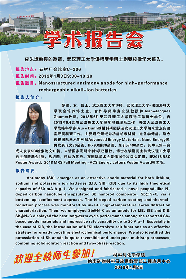 [1月3日]材化学术论坛:武汉理工大学讲师罗雯学术报告