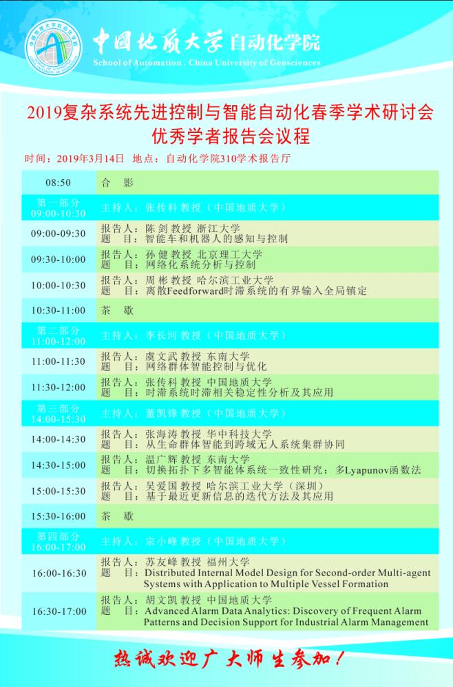 [3月14日]自动化学术论坛:2019复杂系统先进控制与智能自动化春季学术研讨会优秀学者报告会