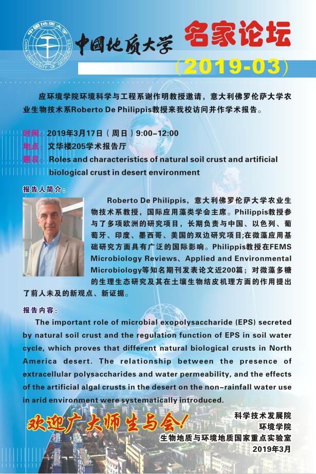 [3月17日]名家论坛:意大利佛罗伦萨大学农业生物技术系Roberto De Philippis教授学术报告