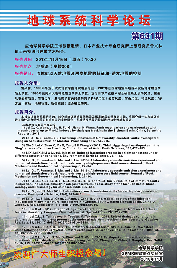 [11月16日]地球系统科学论坛:日本产业技术综合研究所上级研究员雷兴林博士学术报告