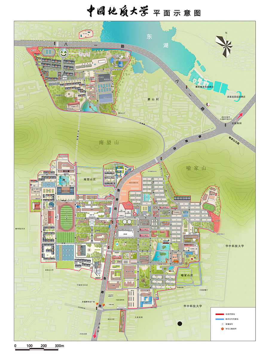 武昌火车站上车——轨道交通4号线(武汉火车站方向)2站——中南路站转——轨道交通2号线(光谷广场方向)6站——光谷广场站(E口出)下车——步行200米——珞喻路鲁巷站上车——72路 (或59路 )4站——鲁磨路地质大学站下车。